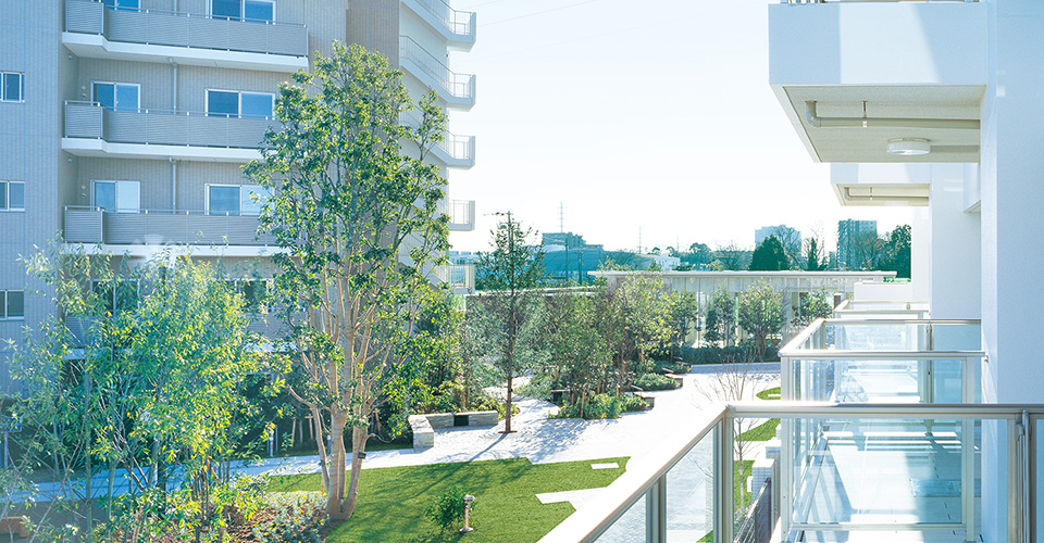 TX「流山おおたかの森」駅から徒歩13分。龍神信仰も伝わる大堀川に寄り添うように建設された「オーベルグランディオおおたかの森」。315世帯が暮らす大規模マンションです。森の水辺という環境を最大限に生かすように住棟が配置され、敷地の中心には四季の潤いを感じさせてくれる「セントラルガーデン」「ヒーリングガーデン」「グリーンモール」を設置。さらに約14,000本もの豊かな緑や桜並木が存在し、自然との暮らしを実現しています。